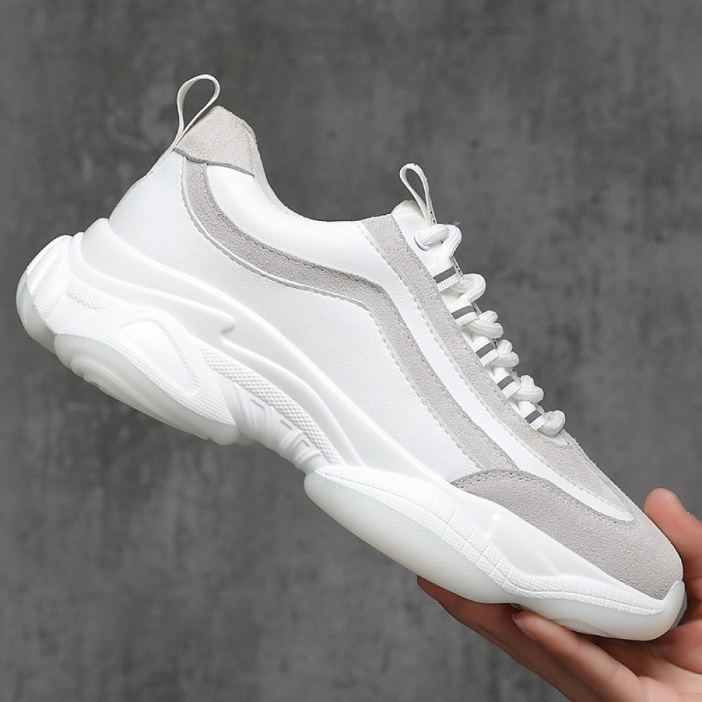 Men's Leather Sports Casual Shoes White Board Shoes Mens Light-Soled Soft Surface Fashion Shoe