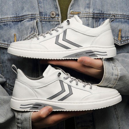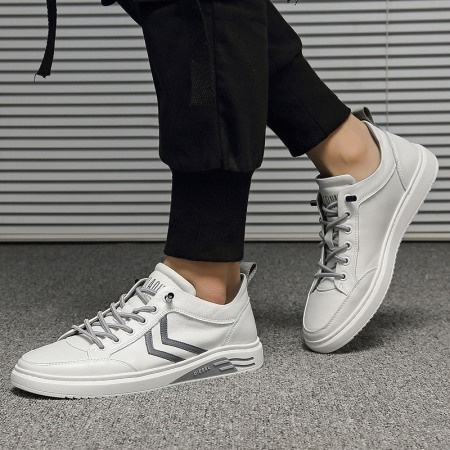Casual Men's Sneakers Leather White New Autumn Trend Breathable Sports Shoes