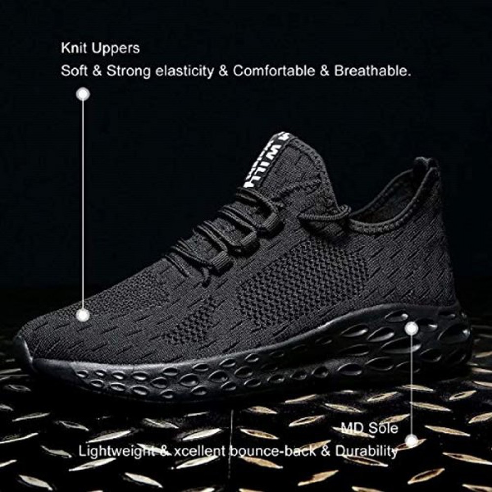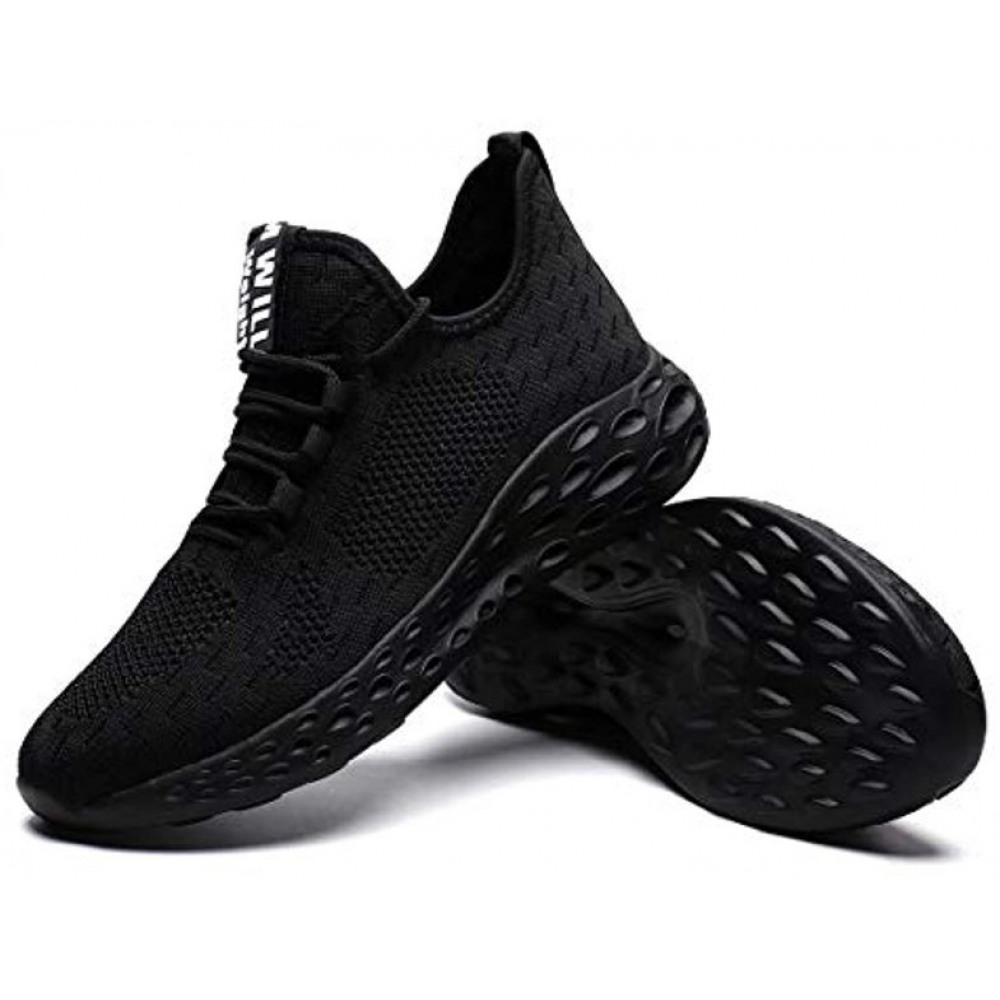 Men's Breathable Mesh Tennis Shoes Comfortable Gym Sneakers Lightweight Athletic Running Shoes Black