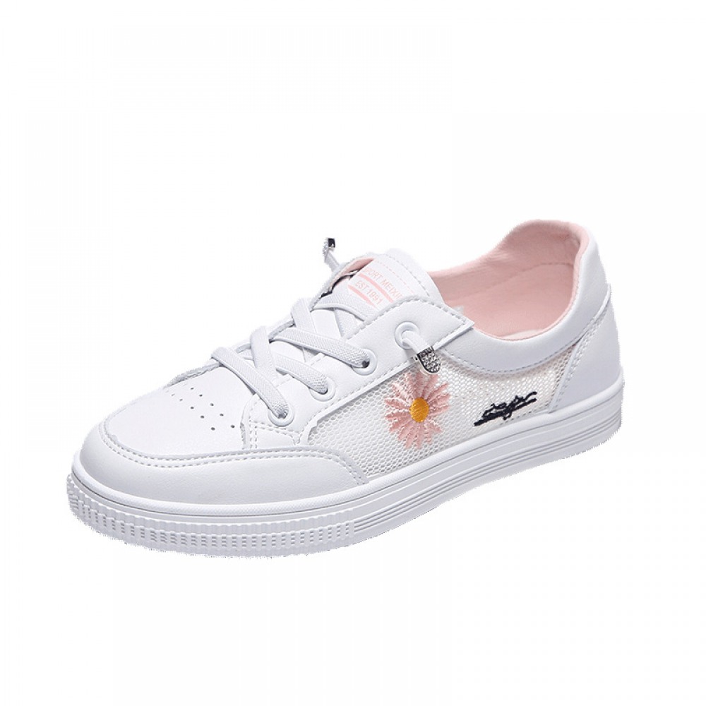 Women's Mesh White Shoes Summer New Breathable Student Running Shoes Flat Sneakers